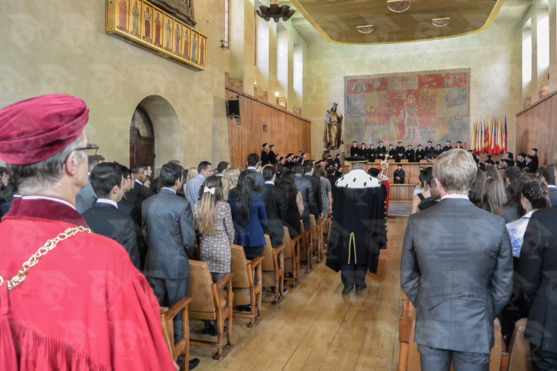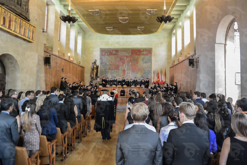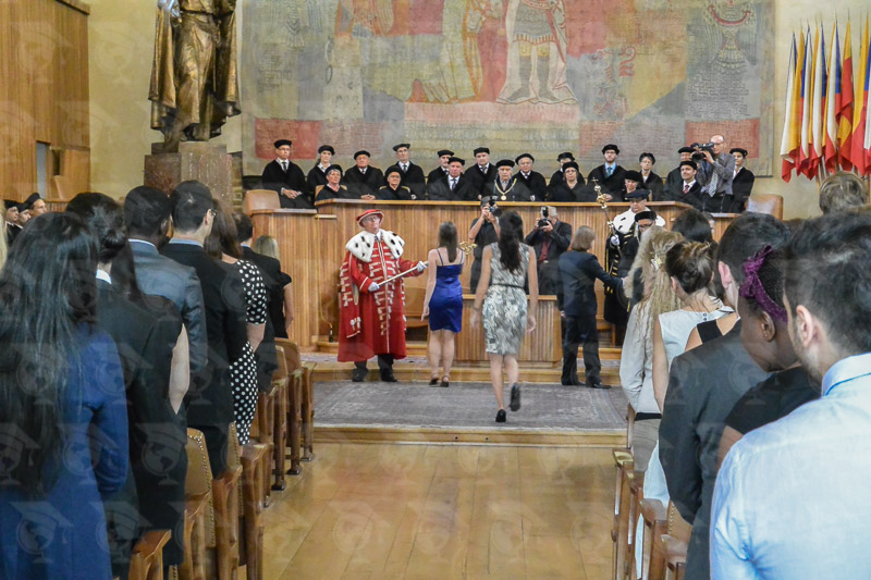 Una habitación grande y antigua, música de órgano, jóvenes damas y caballeros con vestidos, trajes y caras sonrientes y la entrada de más de 40 profesores, decanos y rectores de una de las más antiguas y tradicionales universidades de Europa culminan con la entonación del himno nacional checo. Esta ceremonia es tan tradicional como la propia Universidad, la más antigua entre las universidades checas, fundada en el año 1348 por el rey Carlos IV. Todos aquellos que comiencen sus estudios en esta Universidad, ya sean de Medicina o de Odontología, podrán vivir este momento único en el que realizan el juramento hipocrático.