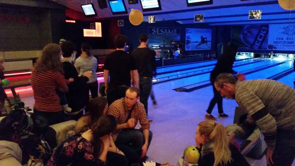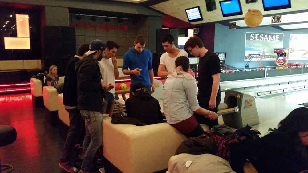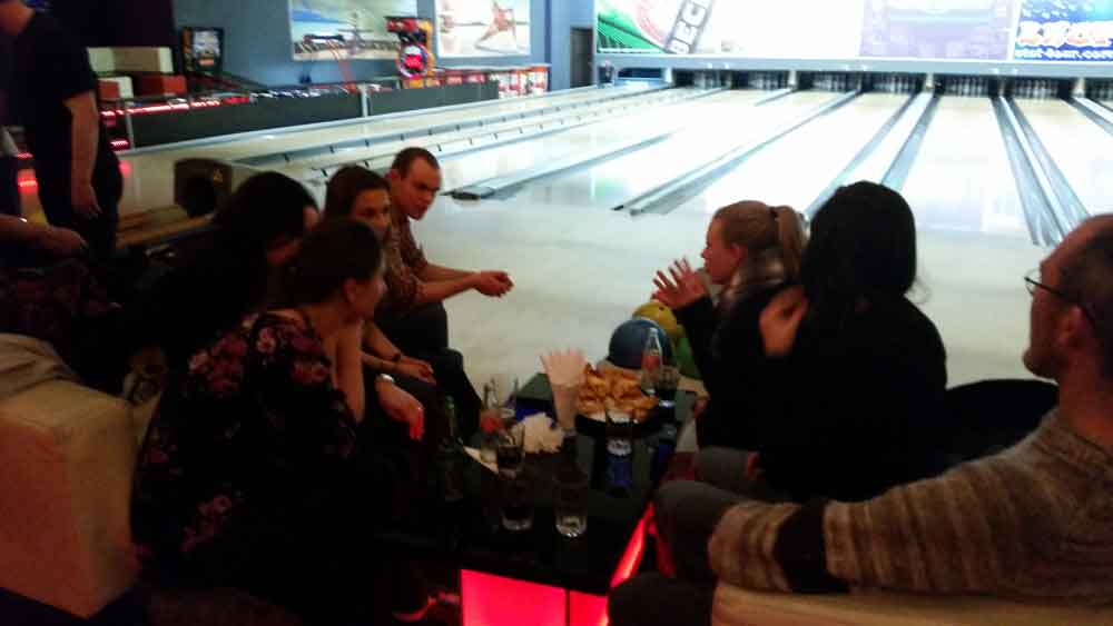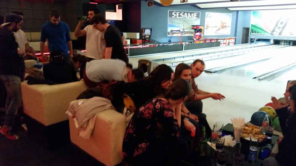 Especialmente divertida fue la cena de bienvenida que organizamos en la bolera de la ciudad. ¡Qué mejor manera de conocer a tus nuevos compañeros!