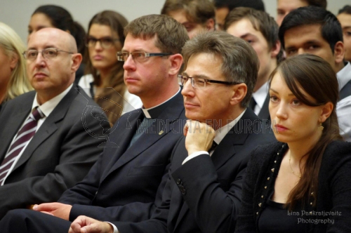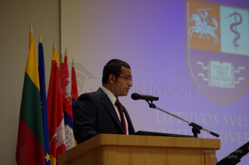 La Ceremonia se abrió con el coro de la Universidad, para pasar a dar la bienvenida de los estudiantes de primer año por parte del profesor Remigijus Žaliūnas, Rector de la Universidad; profesor Vlilius Grabauskas, Rector de la Academia de Medicina; profesor Vitalis Briedis, Decano de la Facultad de Farmacia; profesor Zilvinas Padaiga, Decano de la Oficina de Relaciones y Estudios Internacionales y por el Ministro de Educación y Ciencia de la República Lituana.