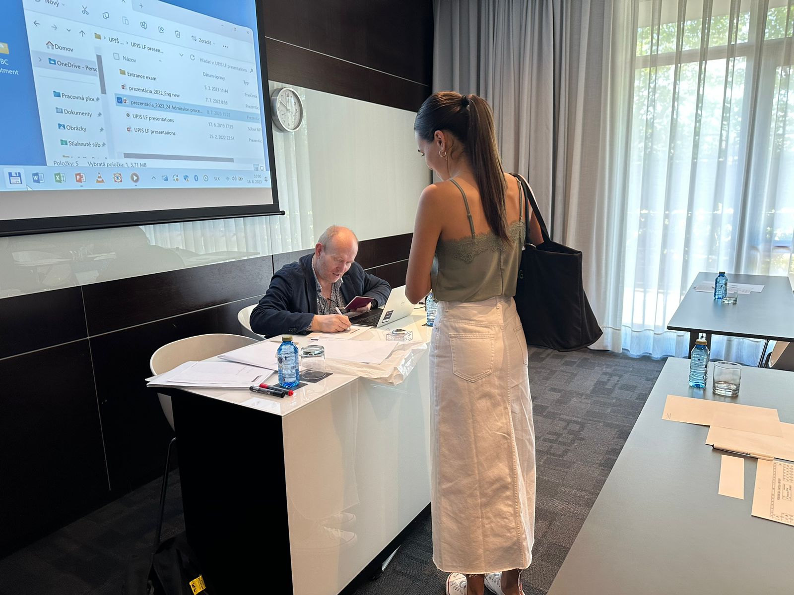 Un emocionante día lleno de expectativas y sueños, donde los estudiantes acompañados por sus familiares, se dieron cita en un evento que marcará su camino hacia la formación médica y odontológica de alta calidad en Europa. La jornada comenzó con un cálido recibimiento, con los estudiantes ingresando a la sala acompañados por sus seres queridos. El evento contó con la presencia de un representante de la Universidad Pavol Josef Safarik, quien ofreció una presentación detallada sobre la institución y proporcionó información valiosa sobre la estructura del examen de acceso. Tras la presentación, los padres se retiraron de la sala para permitir que los estudiantes se concentraran en la prueba que duró aproximadamente una hora y media.